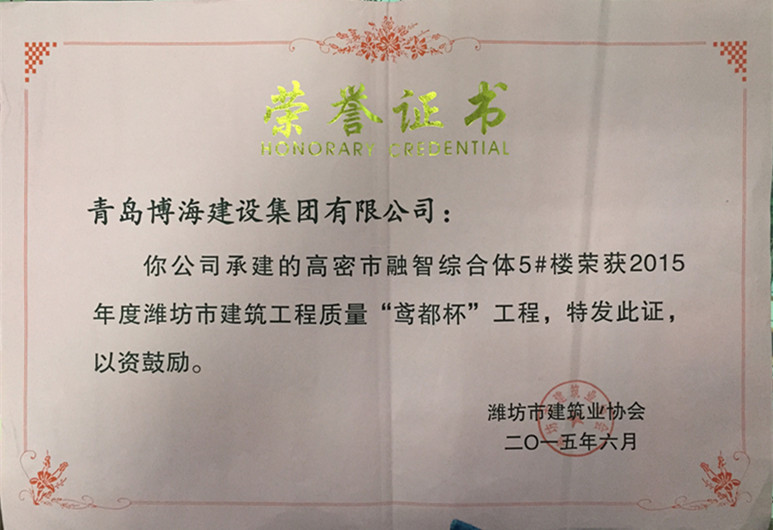 2015年度濰坊市建筑工程質(zhì)量“鳶都杯”-高密融智5#樓