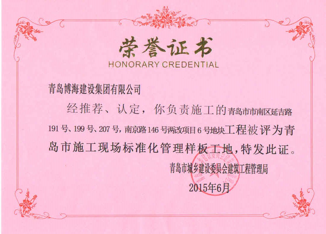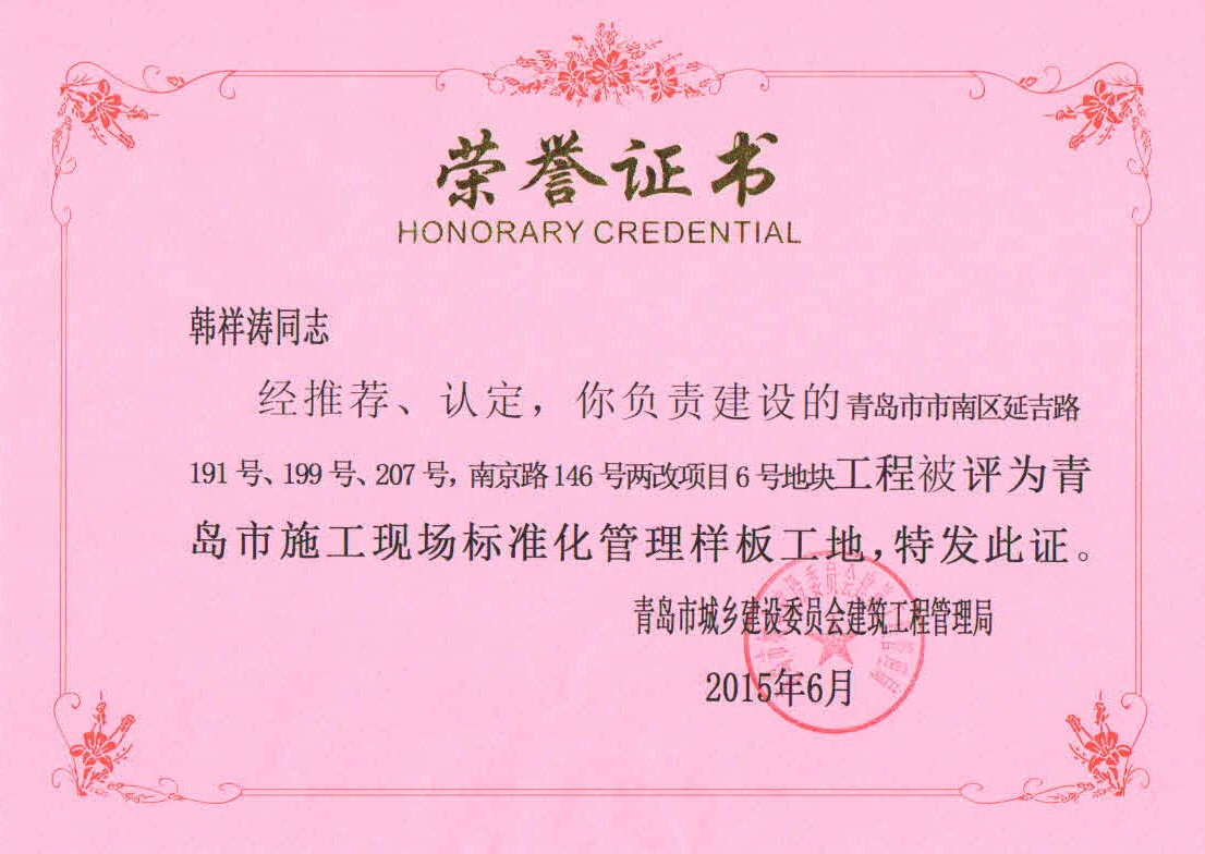 2015年青島市施工現(xiàn)場(chǎng)標(biāo)準(zhǔn)化管理樣板工地-延吉路兩改項(xiàng)目-韓祥濤