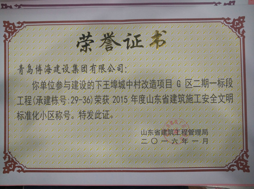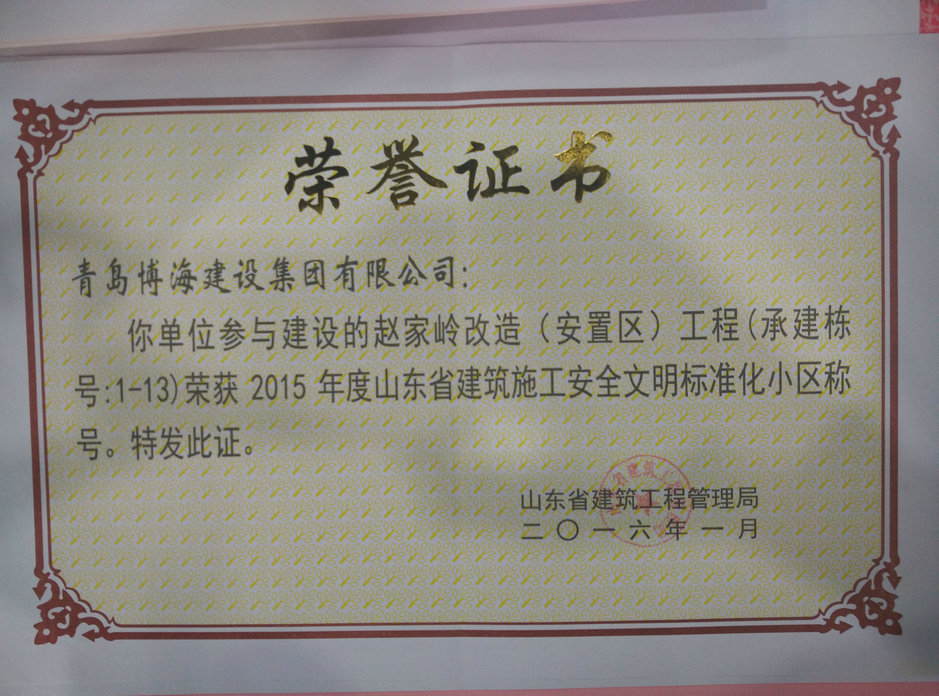 2015年山東省安全文明小區(qū)-趙家?guī)X