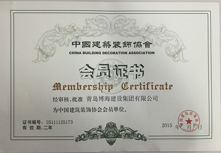 中國(guó)建筑裝飾協(xié)會(huì)會(huì)員單位證書(shū)