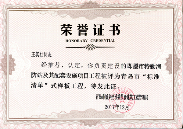 2017年樣板工程-即墨市特勤消防站-王其壯