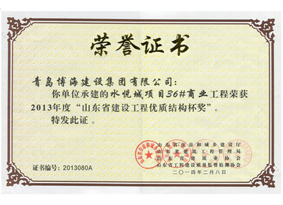 2013年度青島市房屋建筑優(yōu)質(zhì)結(jié)構(gòu)工程獎