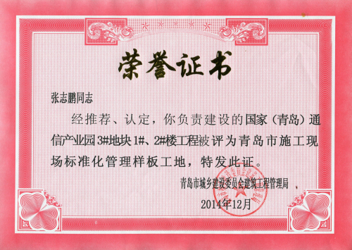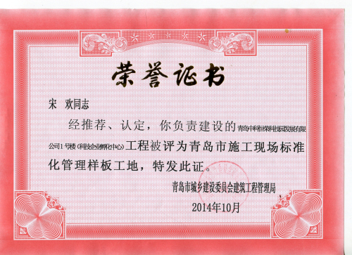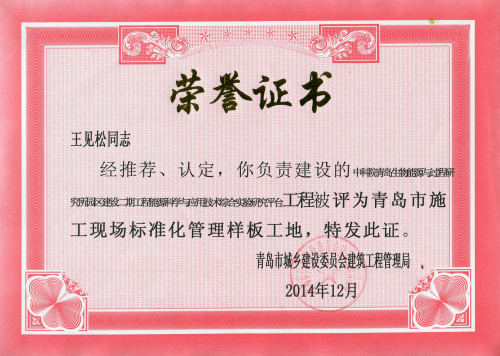 中科院-2014年青島市施工現(xiàn)場標準化管理樣板工地-王見松