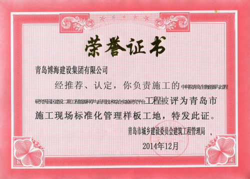 中科院-2014年青島市施工現(xiàn)場標準化管理樣板工地
