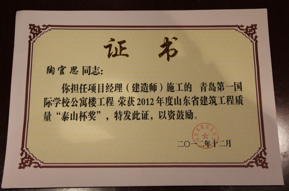 山東省建設(shè)工程優(yōu)質(zhì)結(jié)構(gòu)獎獎杯