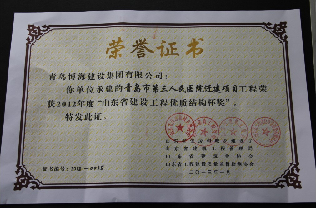山東省建設(shè)工程優(yōu)質(zhì)結(jié)構(gòu)獎-三醫(yī)遷建