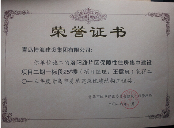 2013年青島市優(yōu)質(zhì)結(jié)構(gòu)-洛陽(yáng)路25#樓