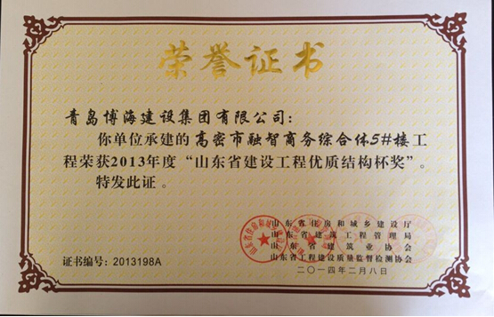 高密博海中心1#樓-2014年山東省安全文明