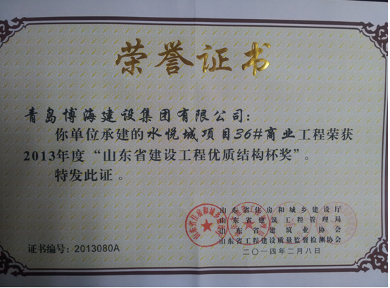 2013年山東省優(yōu)質(zhì)結(jié)構(gòu)-水悅城項(xiàng)目36#商業(yè)