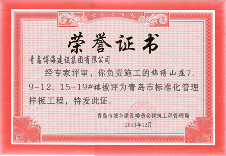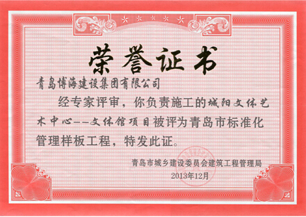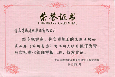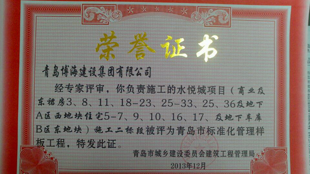 2013年青島標(biāo)準(zhǔn)化管理樣板工程-城陽水悅城
