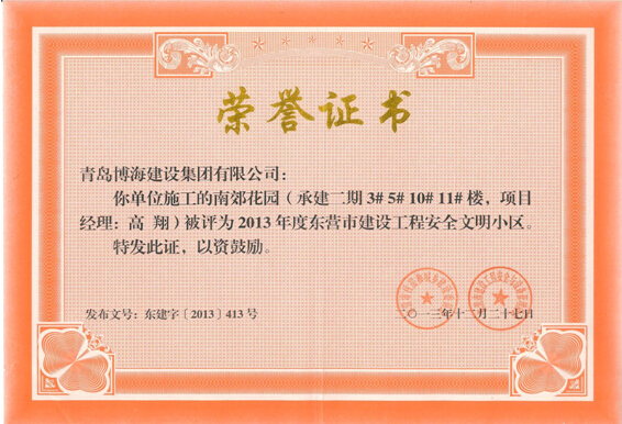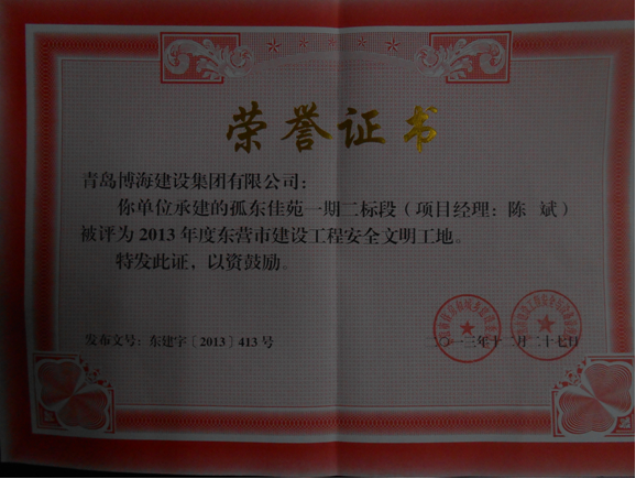 2013年東營(yíng)市安全文明工地-孤東佳苑