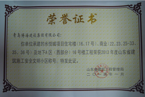 2013年山東省安全文明小區(qū)-城陽水悅城