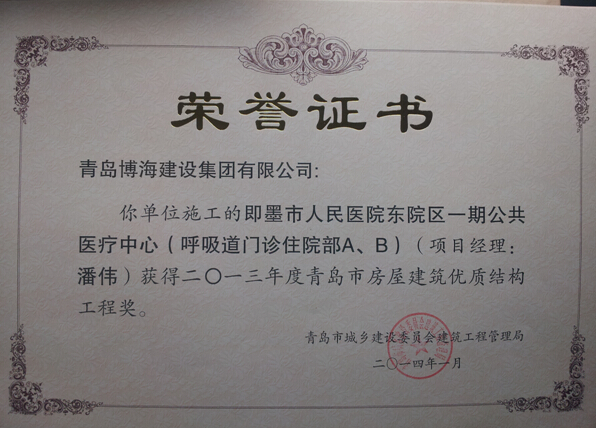 2013年青島市優(yōu)質(zhì)結(jié)構(gòu)-即墨東部醫(yī)療(呼吸道門診)