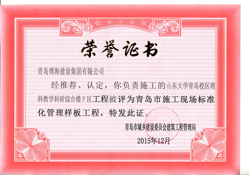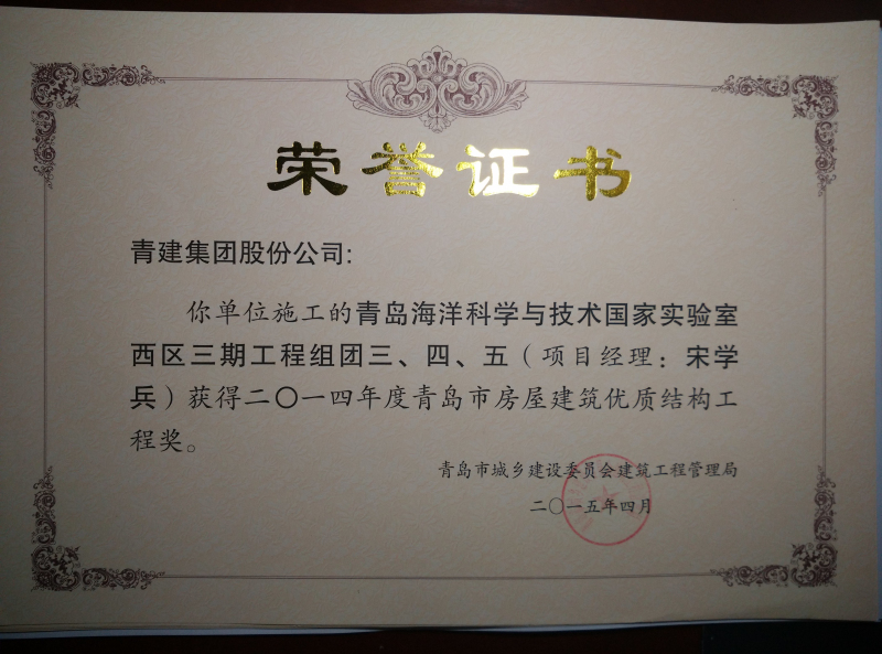 2014年青島市優(yōu)質(zhì)結(jié)構(gòu)-海洋實驗室三期組團三四王