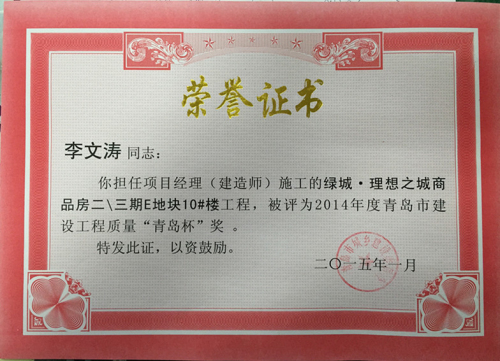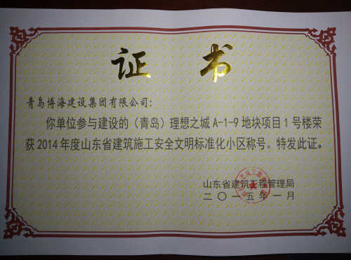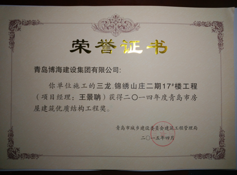 2014年青島市優(yōu)質(zhì)結(jié)構(gòu)-錦繡山莊17#樓