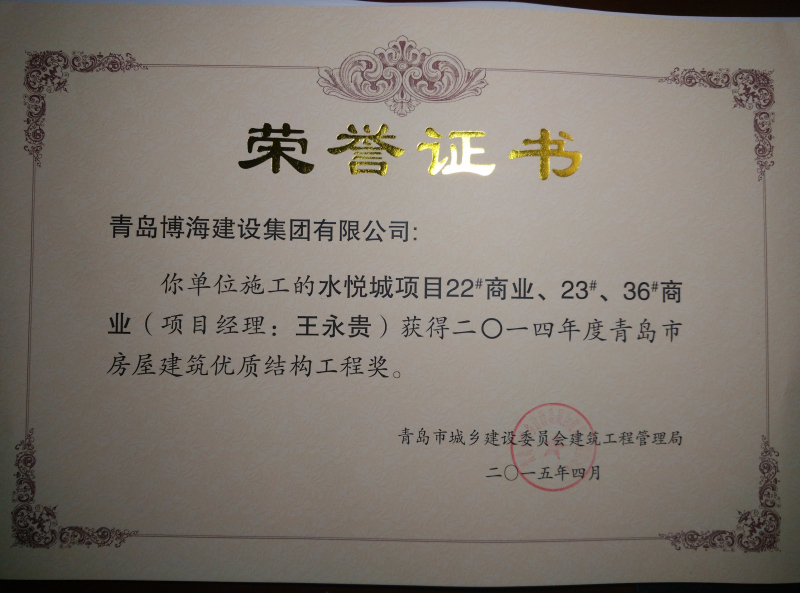 2014年青島市優(yōu)質(zhì)結(jié)構(gòu)-水悅城22#23#36#