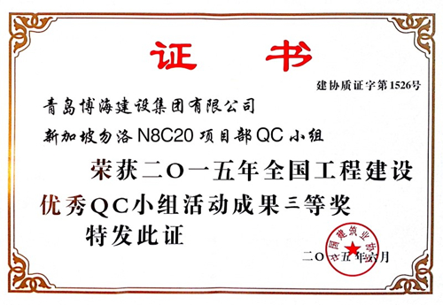 6月23日~25日,由中國(guó)建筑業(yè)協(xié)會(huì)工程建設(shè)質(zhì)量管理分會(huì)舉辦的2015年全國(guó)工程建設(shè)優(yōu)秀質(zhì)量管理小組活動(dòng)成果交流會(huì)在昆明召開(kāi),我公司新加坡勿洛N8C20項(xiàng)目QC小組喜獲全國(guó)工程建設(shè)優(yōu)秀QC小組活動(dòng)成果三等獎(jiǎng)。 本次會(huì)議主要目的是繼續(xù)推進(jìn)工程建設(shè)企業(yè)的質(zhì)量管理工作,增強(qiáng)企業(yè)及職工質(zhì)量意識(shí),總結(jié)及交流一年來(lái)全國(guó)工程建設(shè)系統(tǒng)群眾性質(zhì)量管理活動(dòng)的成績(jī)和經(jīng)驗(yàn),以及表彰優(yōu)秀的質(zhì)量管理小組、優(yōu)秀單位和個(gè)人等。