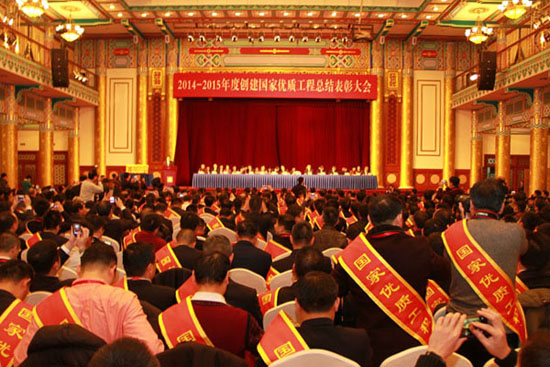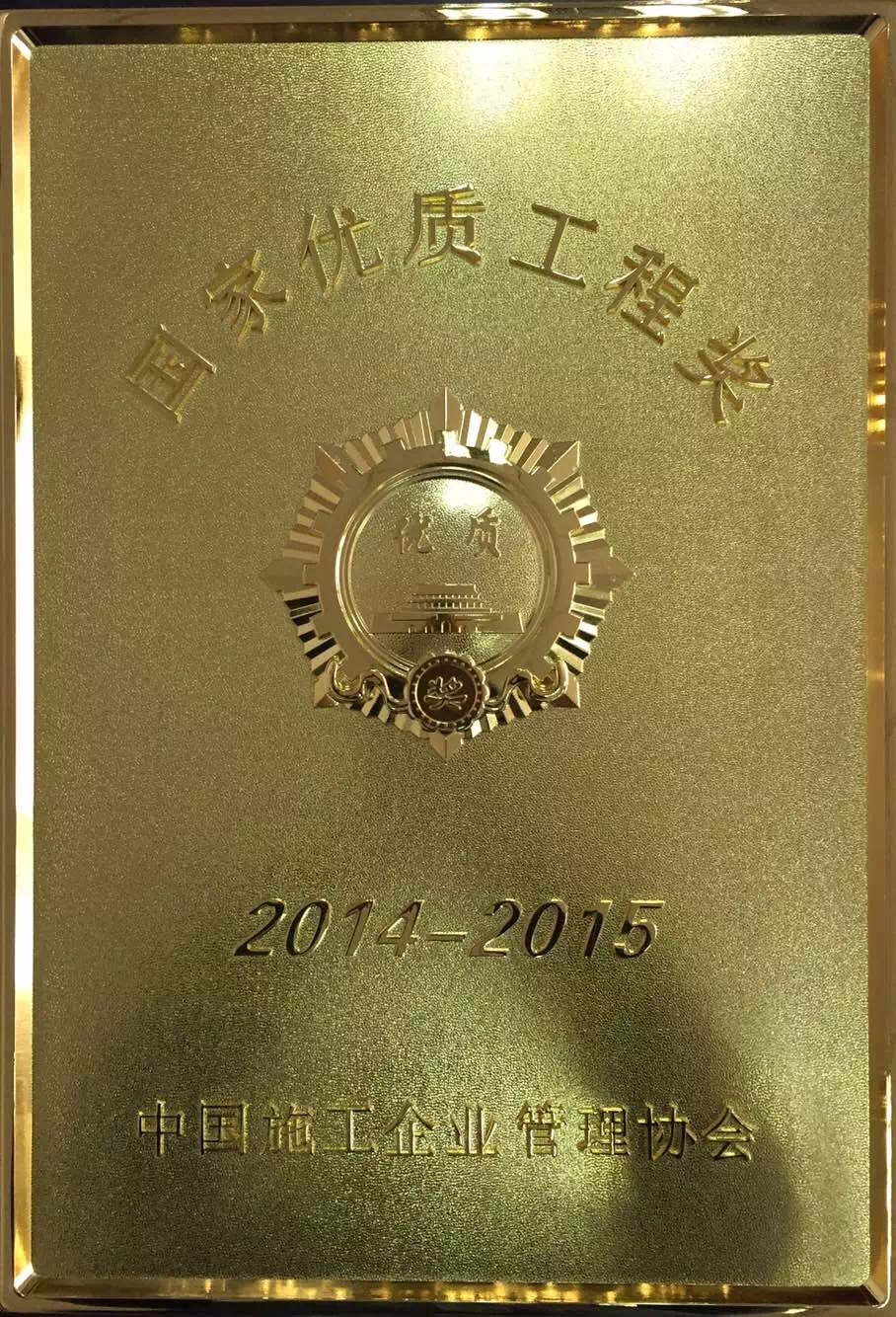 2015年12月18日,2014—2015年度創(chuàng)建國家優(yōu)質工程總結表彰大會在北京飯店金色大廳召開,會上對獲獎工程及個人進行了表彰,其中由公司承建的青島市工商局奧帆賽配套置換項目、城陽文體藝術中心-文體館項目榮獲國家優(yōu)質工程獎,公司總經(jīng)理王霄鵬獲得"國家優(yōu)質工程獎突出貢獻者"榮譽稱號,公司工程總監(jiān)王健斌代表公司出席頒獎大會并上臺領獎。 國家優(yōu)質工程獎是經(jīng)中央確認的工程建設領域設立最早、規(guī)格最高、跨行業(yè)、跨專業(yè)的國家級榮譽獎勵,是我國工程建設質量方面的最高榮譽獎勵。